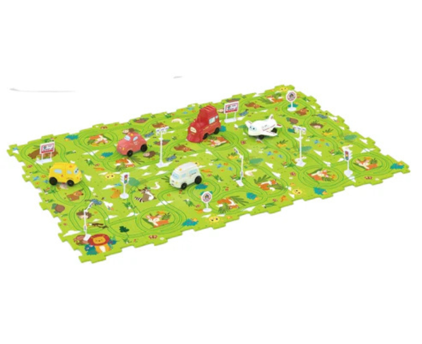 The Zoo-Themed Car Track Building Set features 37 puzzle-style pieces that let children build interactive tracks for electric-powered cars, encouraging creativity and hands-on learning for ages 3 and up. The flexible layouts support problem-solving skills and endless play possibilities. For best play, set it up on a flat surface and style the track by rearranging pieces to create new zoo-inspired routes.