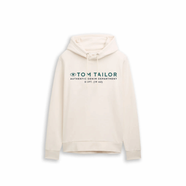 MoustacheTom Tailor Offwhite Hoodie with Logo Print