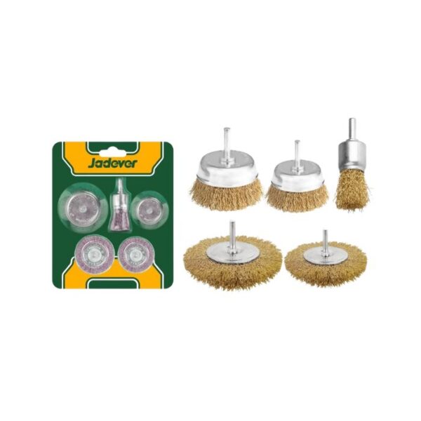 The Jadever 5pcs wire brush set is designed for effective metal polishing, featuring five durable brushes suitable for various cleaning and surface preparation tasks. Each brush is crafted to remove rust, paint, and grime efficiently, making it ideal for DIY projects, workshop use, or professional maintenance. Compact and easy to handle, this set ensures precision and control for smooth, polished results on metal surfaces.