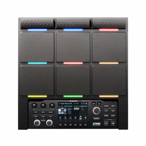 This professional sampling drum pad features nine velocity sensitive pads with customizable RGB lighting for expressive performance. It includes large internal storage with thousands of built in samples and loops, plus a built in sampler for recording from external sources. A color display provides intuitive control, while onboard effects and extensive audio and MIDI connectivity support advanced performance and studio integration. USB audio and MIDI interface functionality allows seamless use with DAWs and external gear.